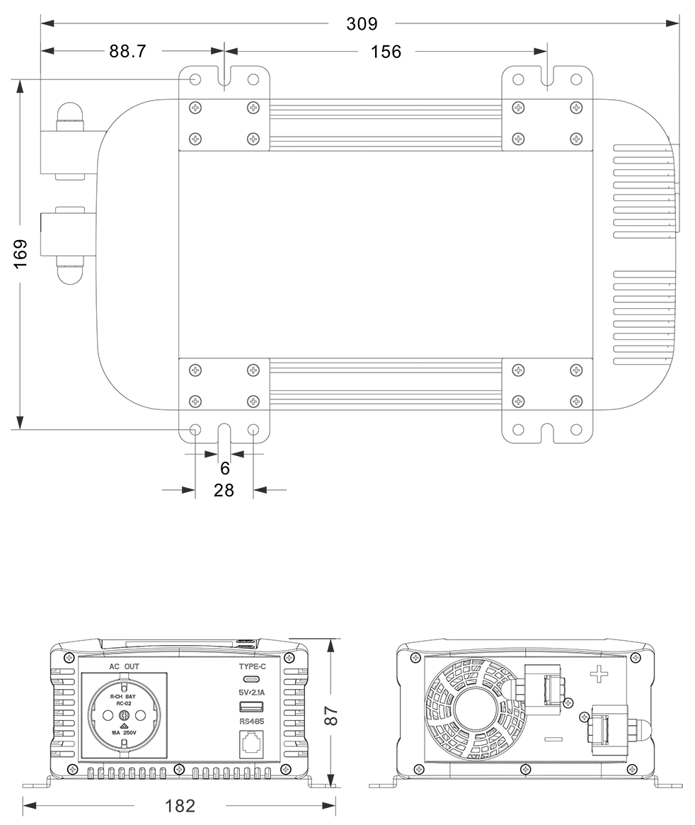 Mekaaniset piirustukset: (309x182x87mm)