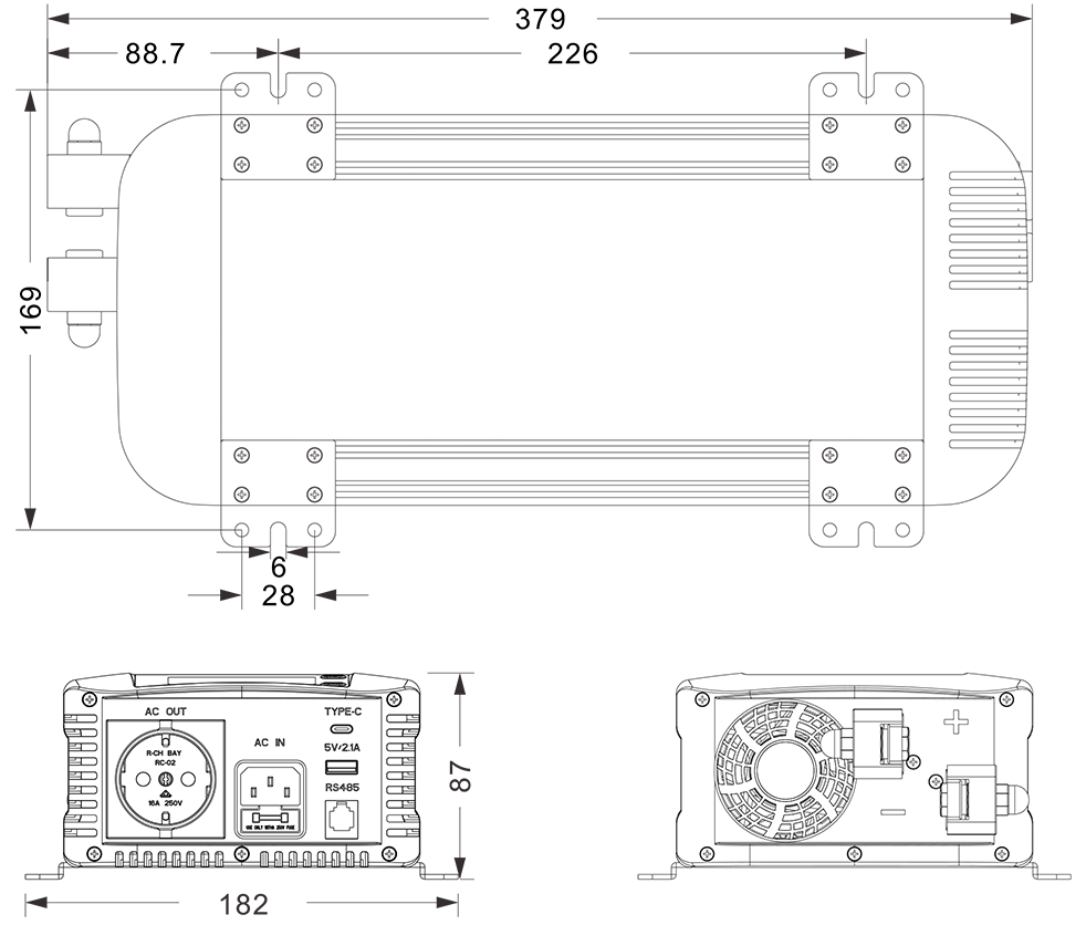 Mekaaniset piirustukset: (379x182x87mm)