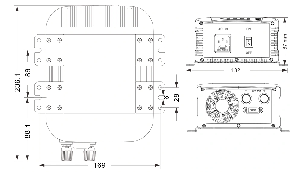 Mekaaniset piirustukset: (236,1 × 182 × 87 mm)