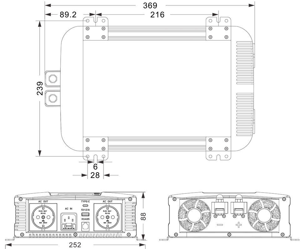 ●USB: 5 V / 2,1 A / Type-C: Max 35 W