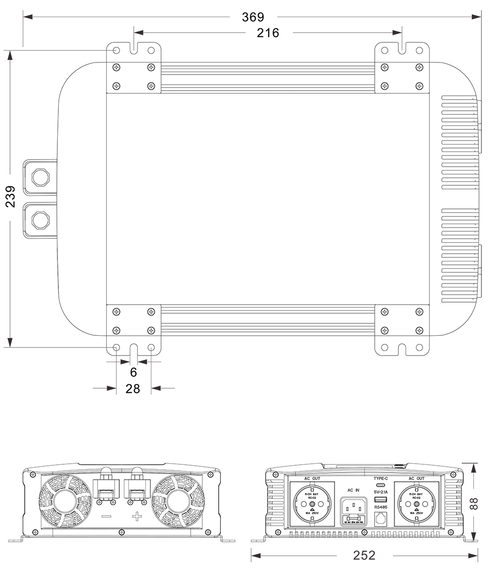 Mekaaniset piirustukset: (369x252x88mm mm)