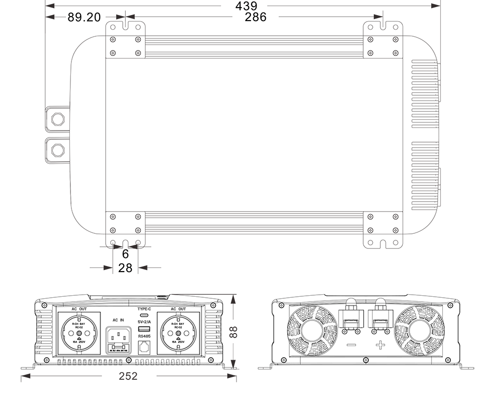 ●Sisäänrakennettu ATS- ja AC-katkaisin