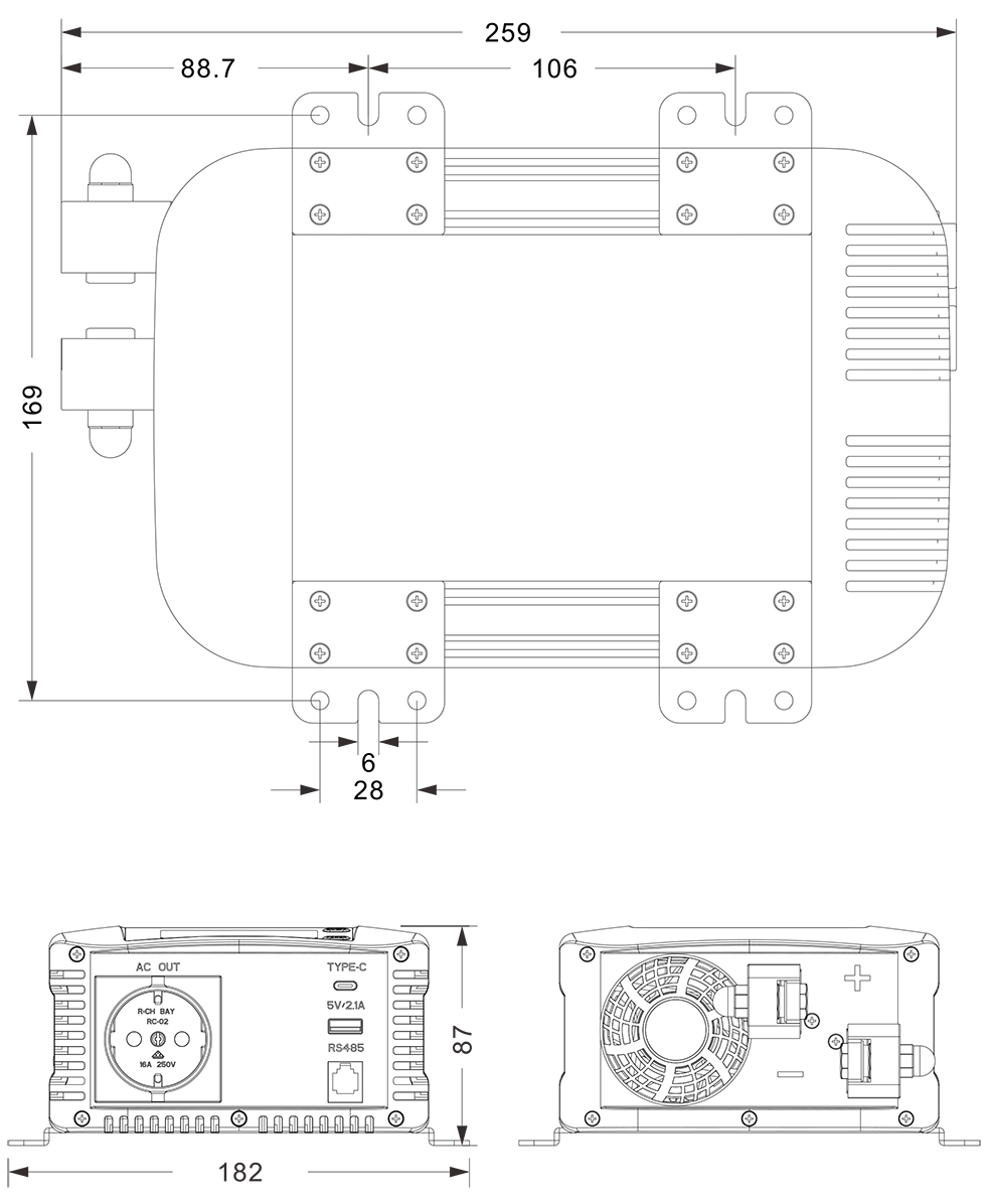 Mekaaniset piirustukset: (259x182x87mm)