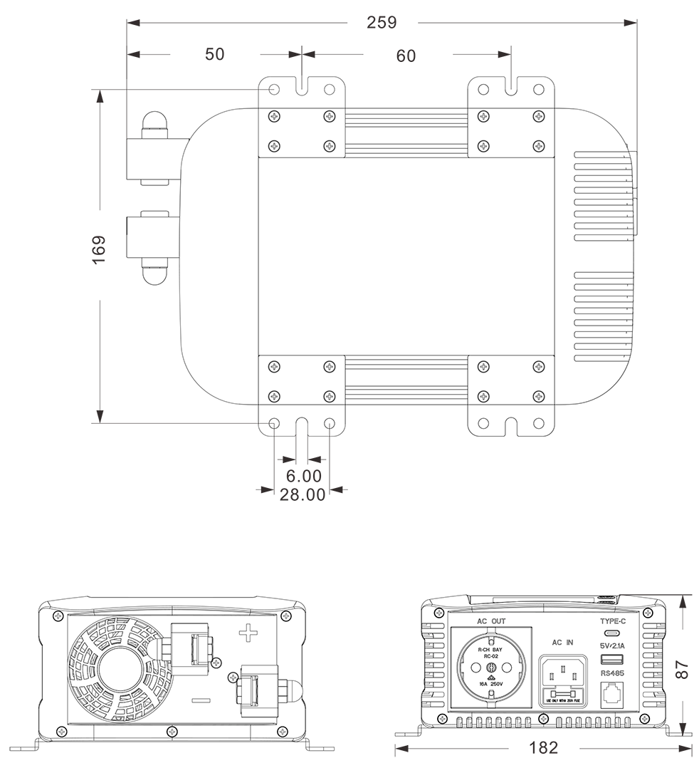 ●USB: 5 V / 2,1 A / Type-C: Max 35 W